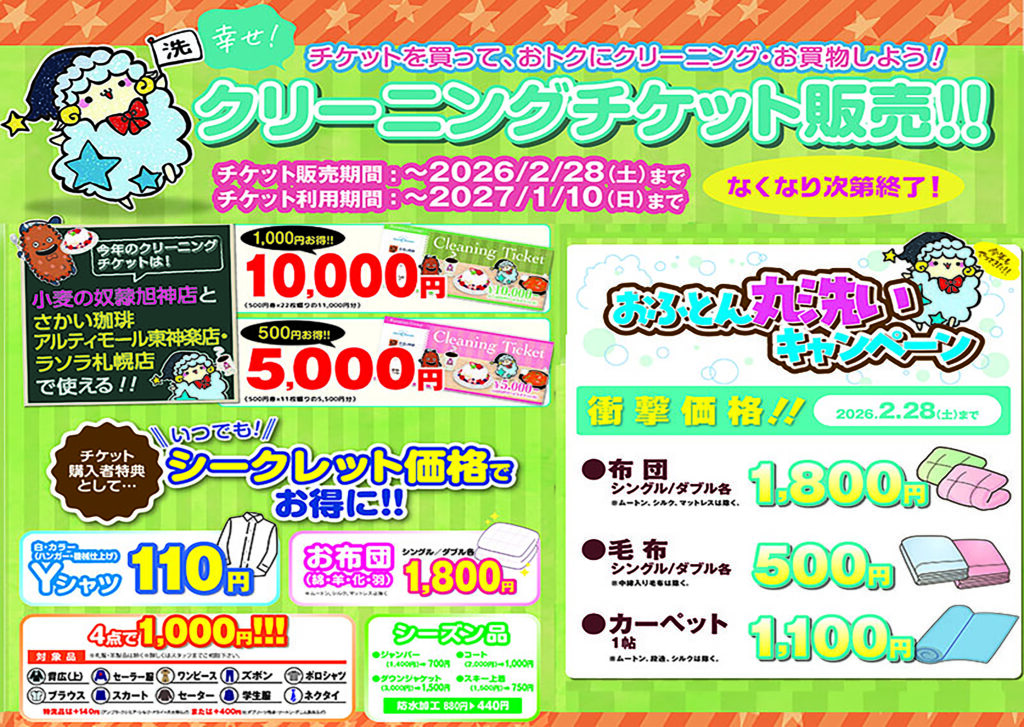 また同時販売している、クリーニングチケットも同じく2/28までの販売🏃💨