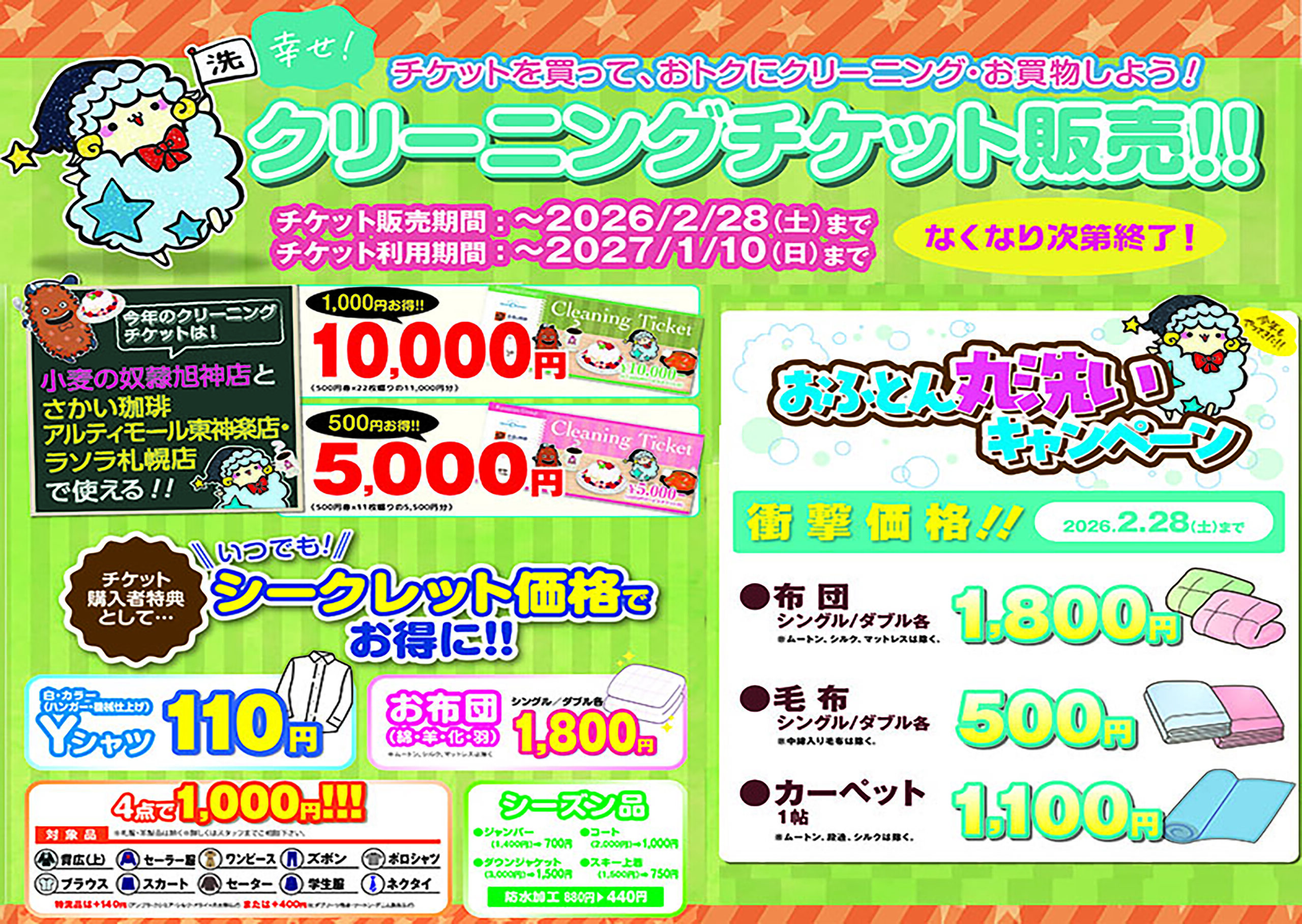 【クリーニングチケット】も同時販売いたします😌2026/2/28(土)までに布団クリーニングに出せないという方も、こちらのチケットを購入していただければ、来年の1月10日までキャンペーン価格と同じ1,800円でクリーニング出来ちゃうんです😉✨✨